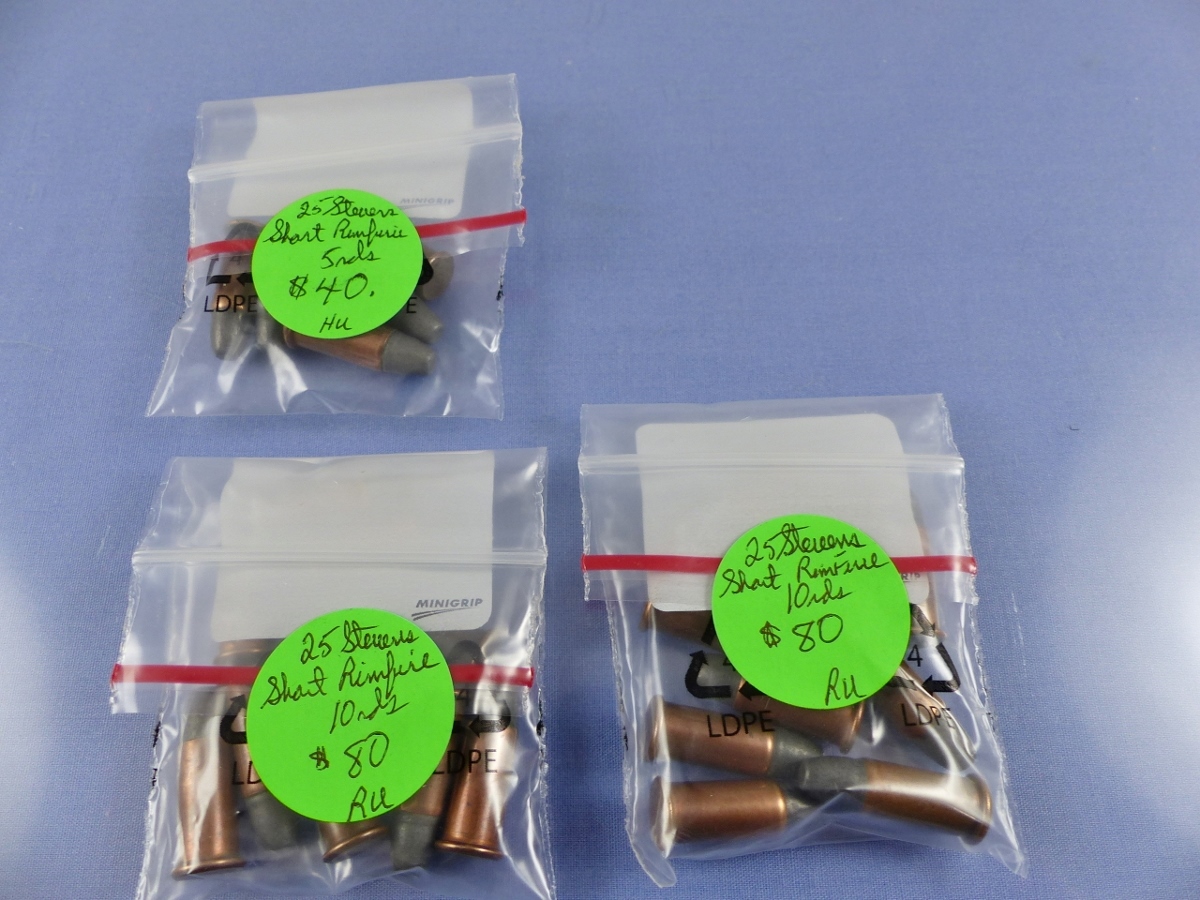 AMMO 25 STEVENS SHORT RIMFIRE 5 OR 10 PER PKG 40, 80HU, RU