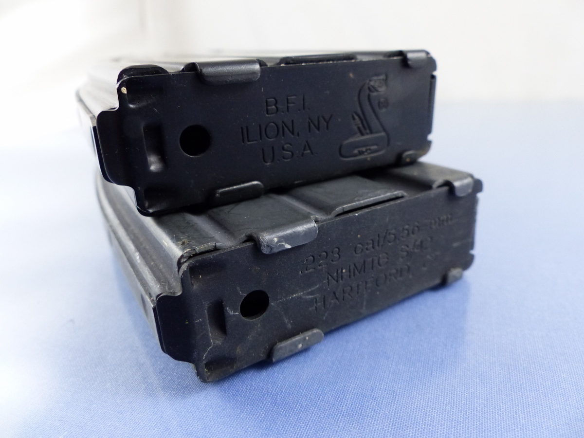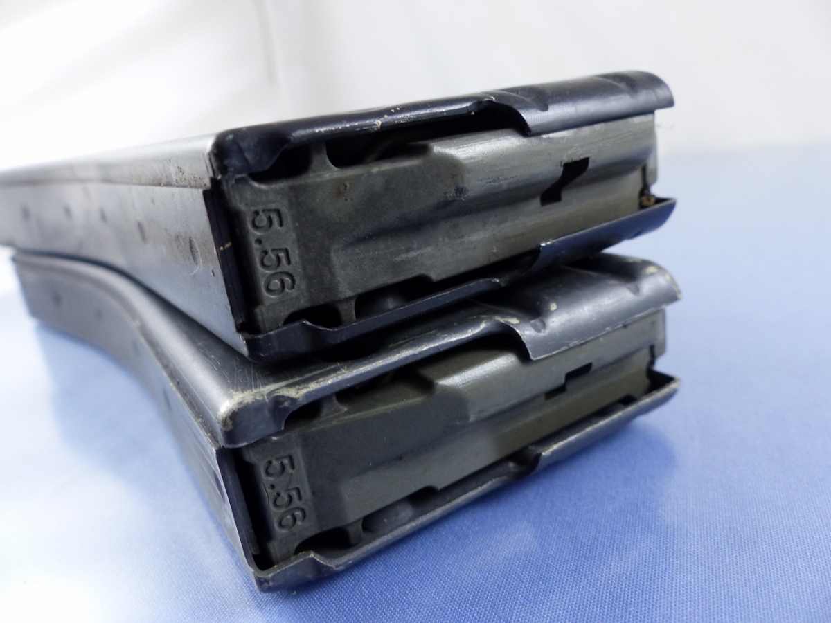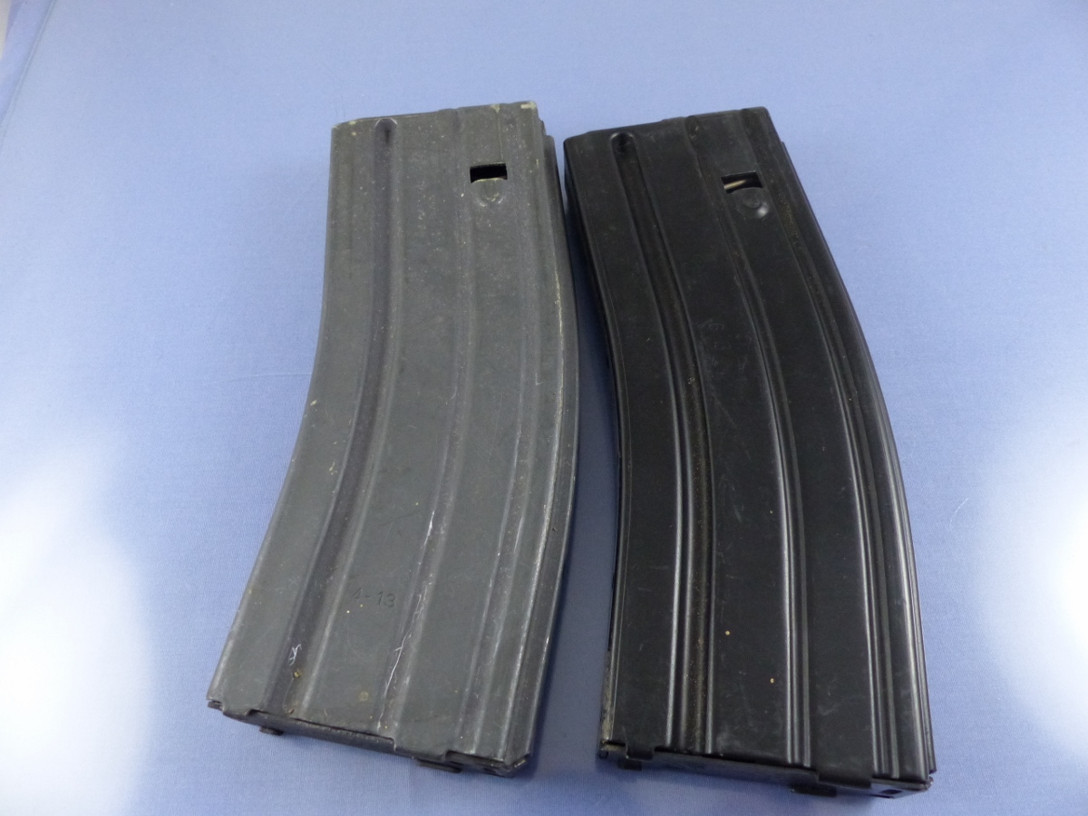 MAGAZINE MARKED: GREY IS MARKED NHMTG 5.56, BLACK IS MARKED BFI, 04TQ4, 6 13, 5.56