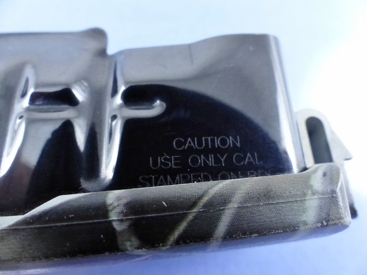 MAGAZINE MARKED: CAUTION USE ONLY CAL. STAMPED ON BBL